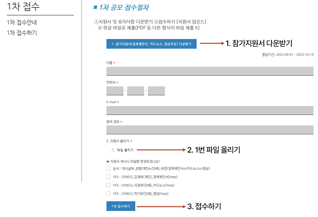 ๊ณต๋ชจ์ ์ ์ฐธ๊ฐํ์๋ ๋ถ๋ค๊ป์๋ ์๋ ์ ์ ๋ฐฉ๋ฒ์ ๋ฐ๋์ ํ์ธํ์ ํ, ๊ธฐ๊ฐ ๋ด ์ํ์ ์ ์ถํด์ฃผ์๊ธฐ ๋ฐ๋๋๋ค.
