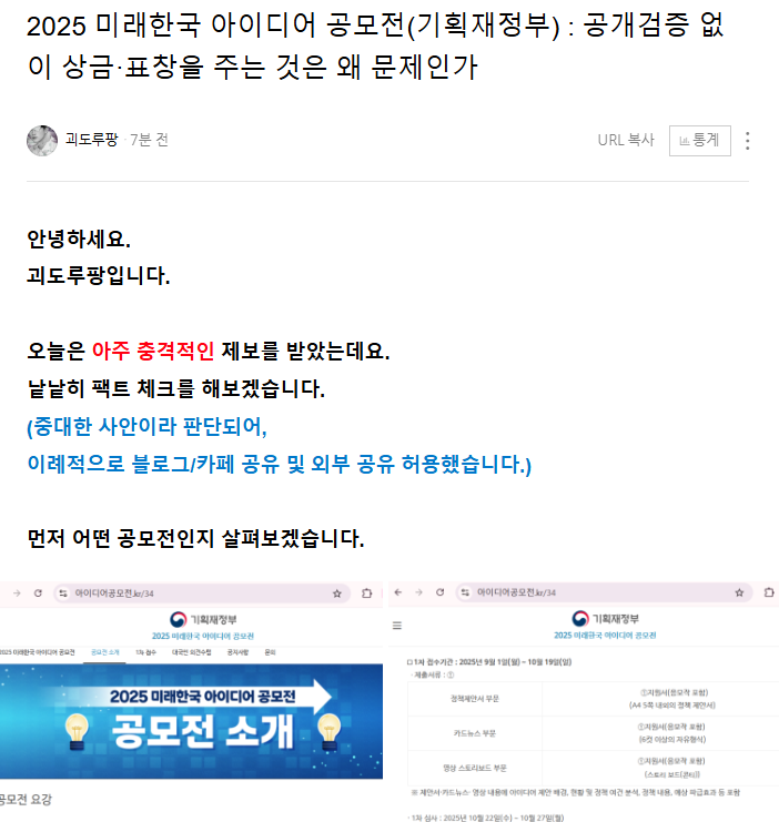 그것이 국민 세금을 쓰는 정부 주최 공모전의 최소한의 책무다.
